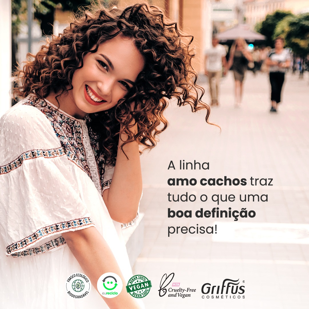 O Condicionador Amo Cachos Griffus hidrata e protege os fios, selando as cutículas e preservando os ativos na fibra capilar. Liberado para as técnicas. Livre de parabenos, corantes artificiais, óleo mineral e silicone. Coco, Chia, Linhaça – a dupla Chia e Linhaça contribui para a hidratação e definição dos cachos. a Chia ajuda a recuperar os nutrientes perdidos no dia a dia. A Linhaça ajuda a recuperar fios danificados e melhora a elasticidade. O Coco é altamente nutritivo, ajuda a reduzir o frizz e hidrata os fios mais ressecados, forma uma proteção nos fios para manterem eles hidratados e ainda reduz pontas duplas. Produto vegano, ou seja, não testado em animais e livre de ingredientes de origem animal. Indicado para fios 2A a 4C. A fragrância desse condicionador é frutal. pH: 3,5 – 4,5.
