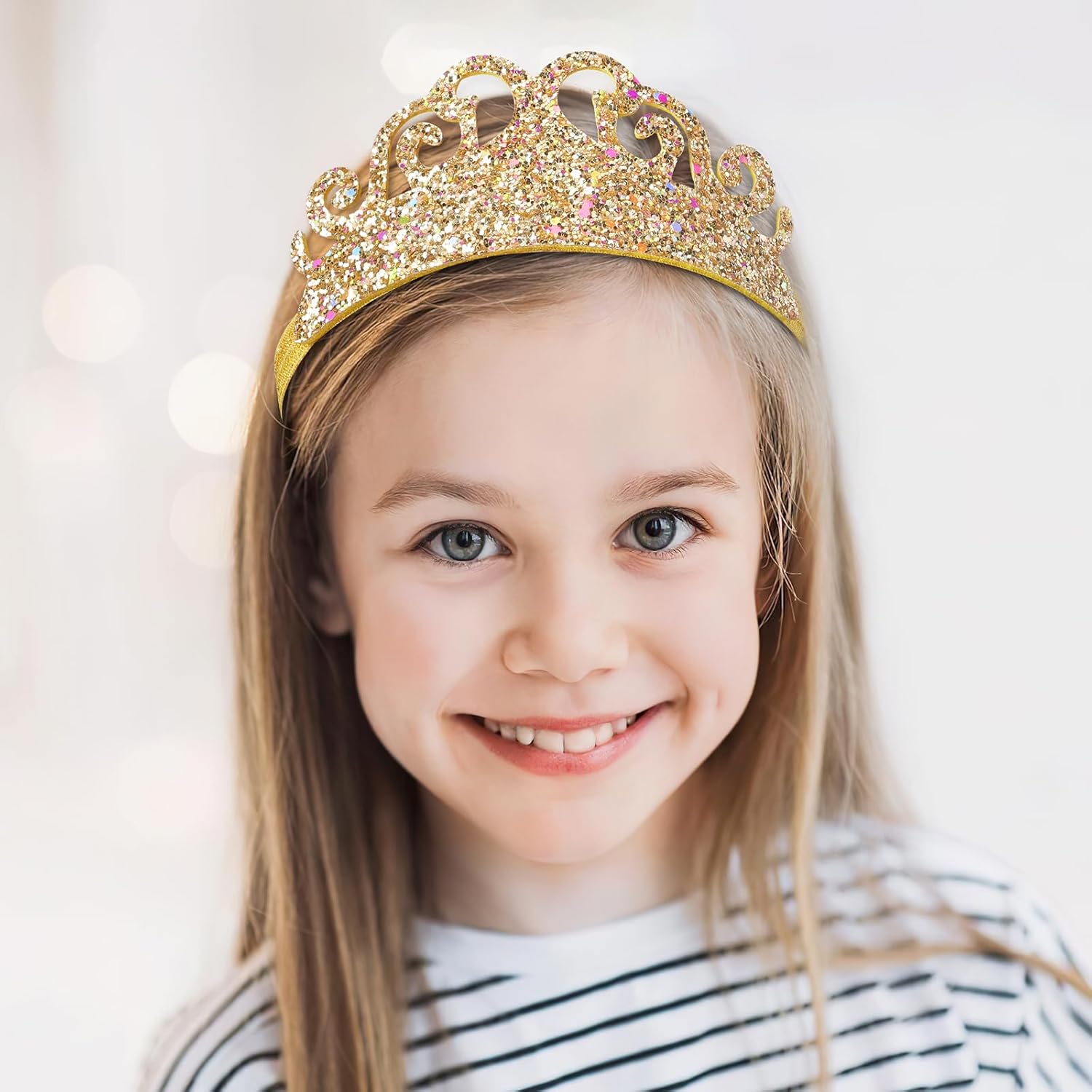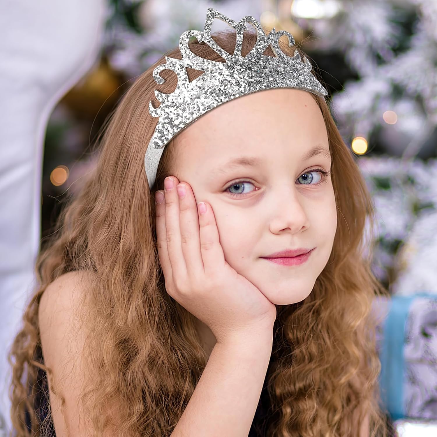 4 tiaras de cabelo com glitter para meninas, com coroa de princesa, elásticas, faixas de cabelo brilhantes para meninas