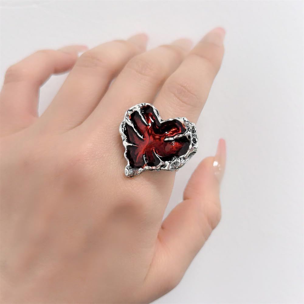 2 avaliações para Anel feminino com garra de coração vermelho prateado moderno exclusivo Halloween mão do diabo ajustável expansível aberto envoltório anéis de dedo ajuste confortável bijuteria…
