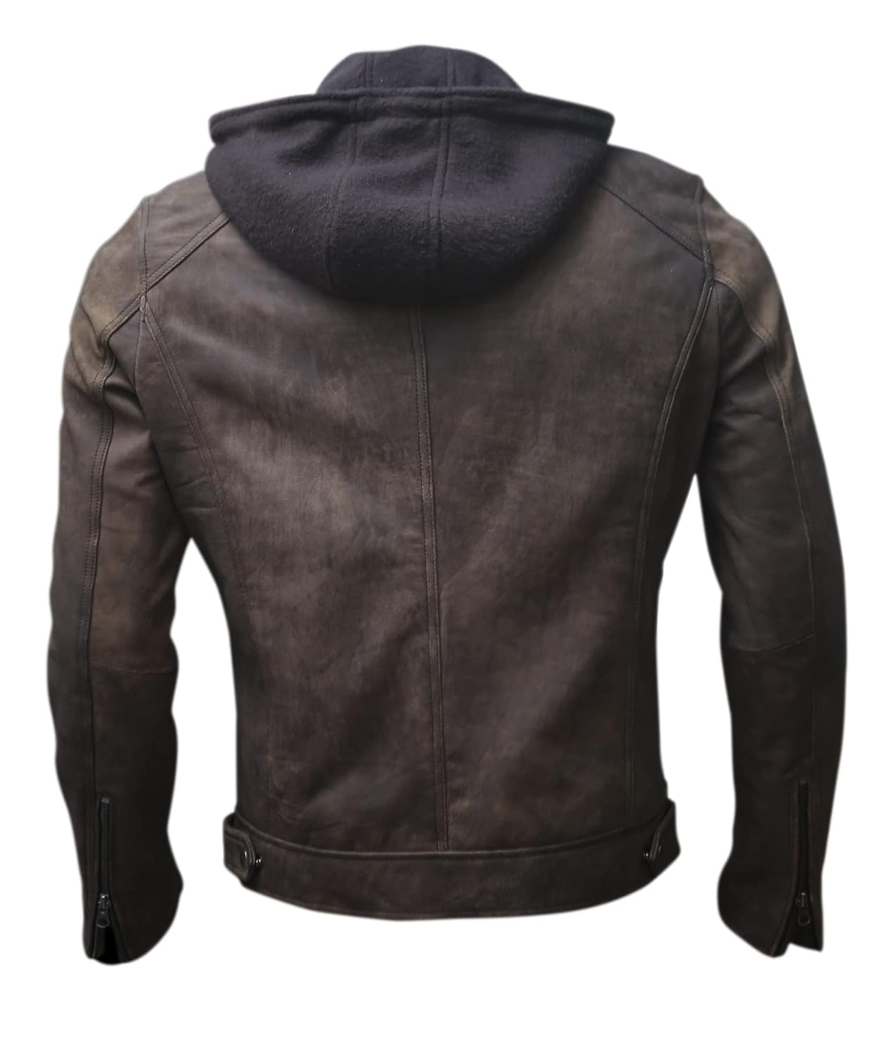 - Quebra o vento mordido: esta jaqueta de couro masculina feita à mão com pele de cordeiro genuína de alta qualidade e forro de poliéster, esta jaqueta de motocicleta com capuz é garantida para manter você aquecido do que o couro tradicional, proporcionando um ajuste seguro