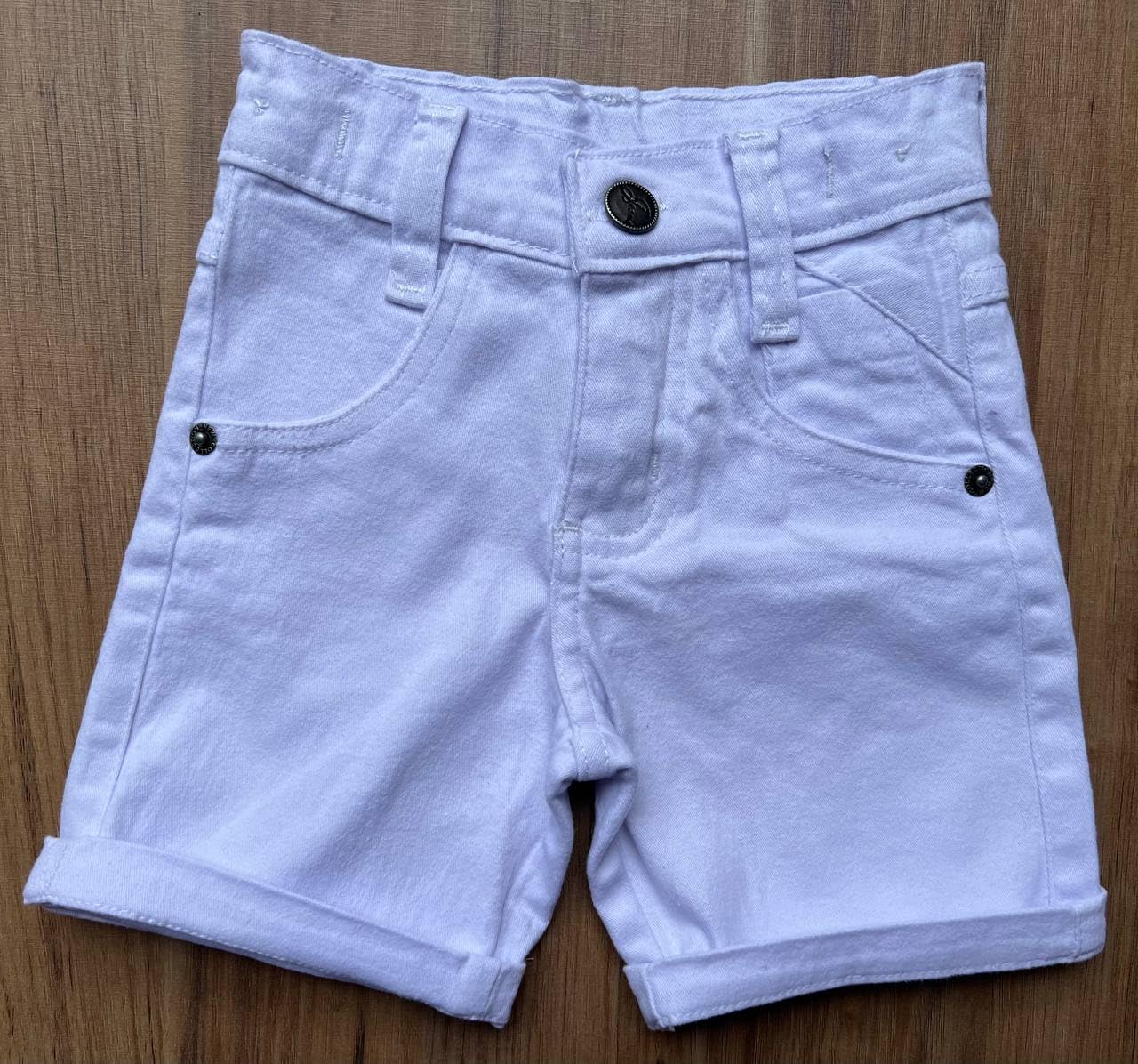 Bermuda Shorts Infantil Verão Menino Sarja Branca Básica
