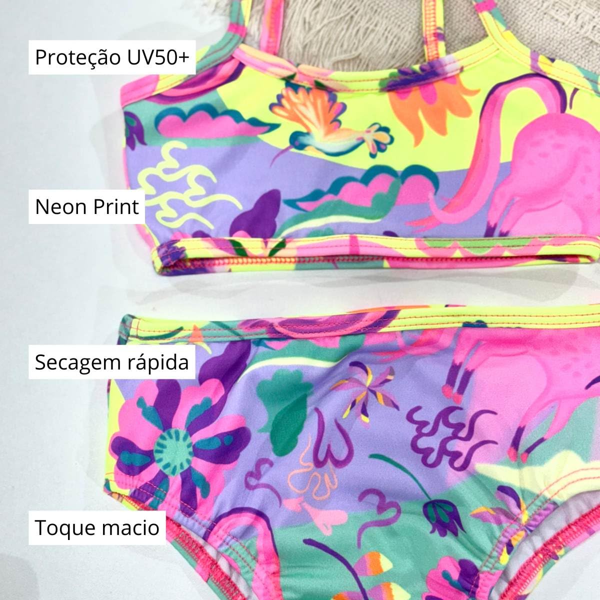 - Biquíni Malha Proteção Solar Uv Neon Print Infantil Menina