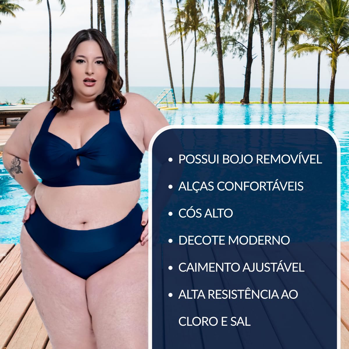 DESIGN EXCLUSIVO: Biquíni plus size com bojo estruturado e detalhe torcido na frente, proporcionando um visual elegante e moderno