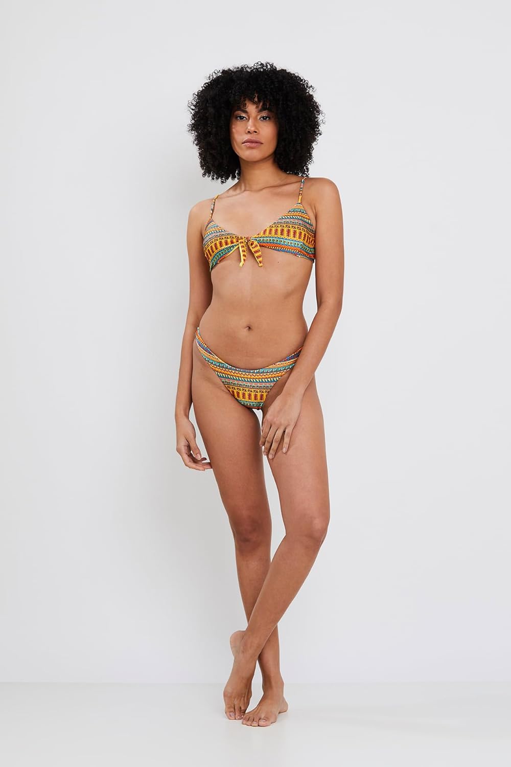 Especificação: Biquíni Top com Nó Retrô e Calcinha Asa Delta Estampado Moda Praia e Piscina
