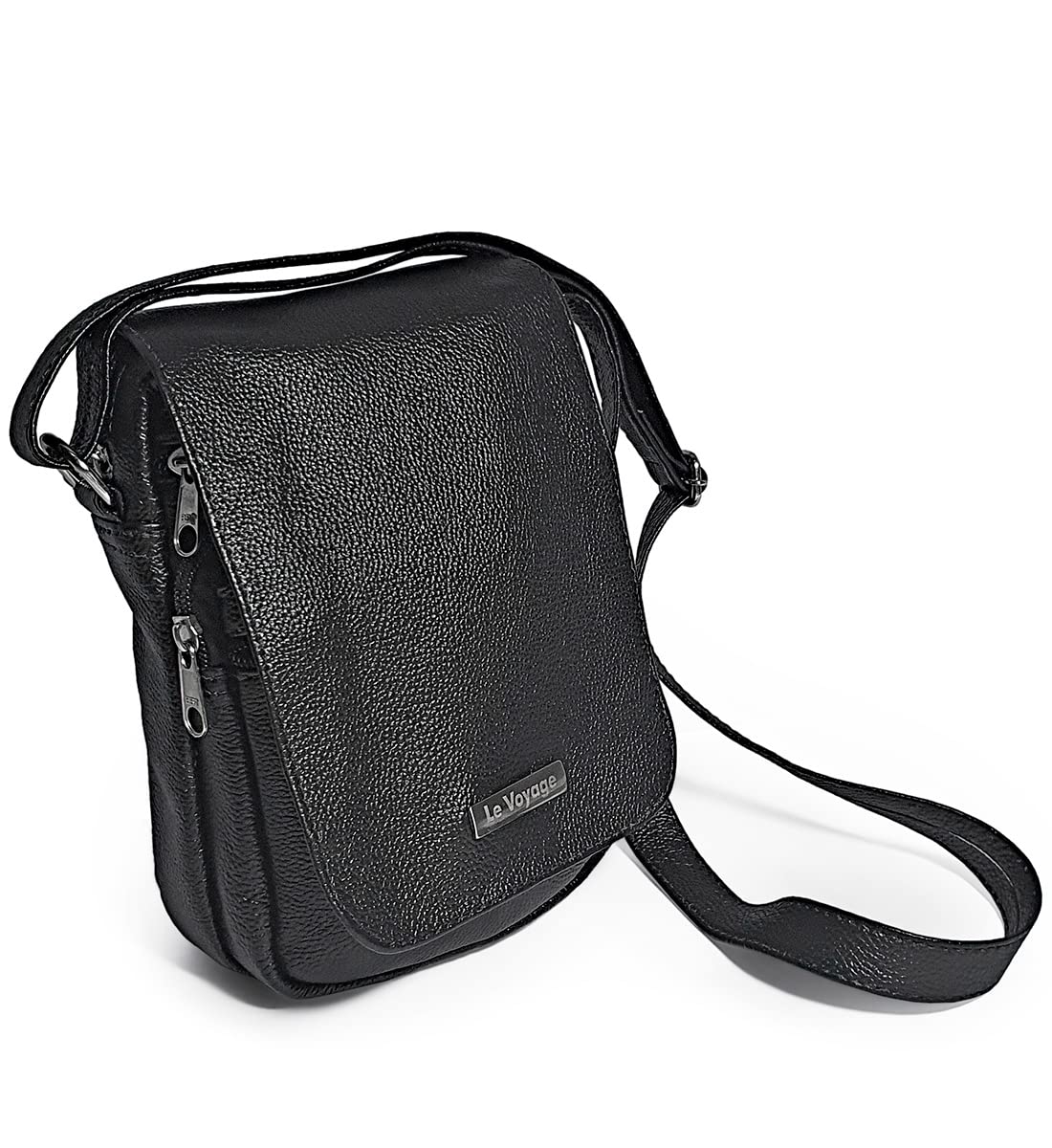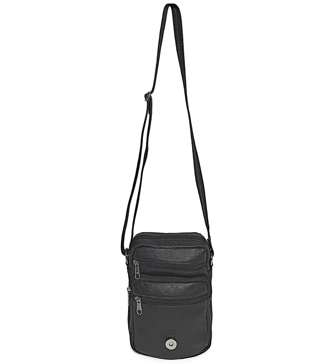 Bolsa Feminina Pequena Transversal Couro Legítimo Ziper Madamix (Preta)