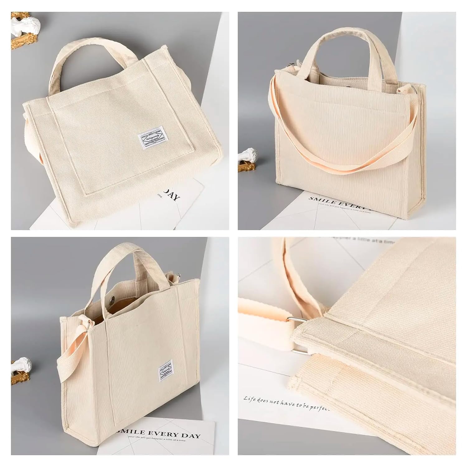 - DESIGN VERSÁTIL: Bolsa tote feminina em veludo cotelê bege claro com estilo elegante e moderno, perfeita para uso diário, trabalho, faculdade ou passeios casuais