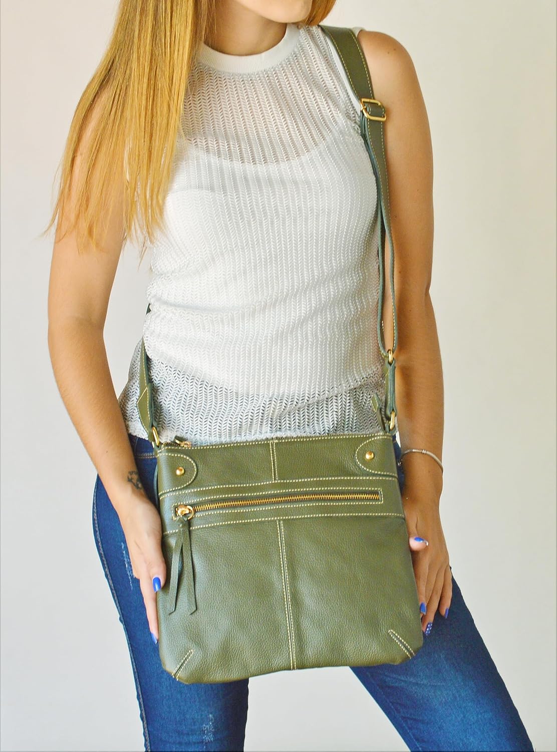 Bolsa Transversal Feminina de Couro Legítimo Tamanho Pequeno Design Simples com 3 Zíperes Porta Celular (Estilo 1)