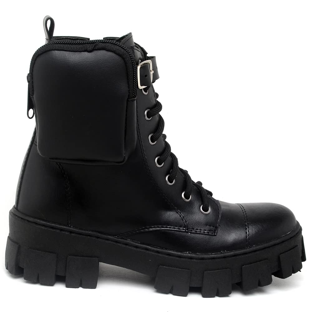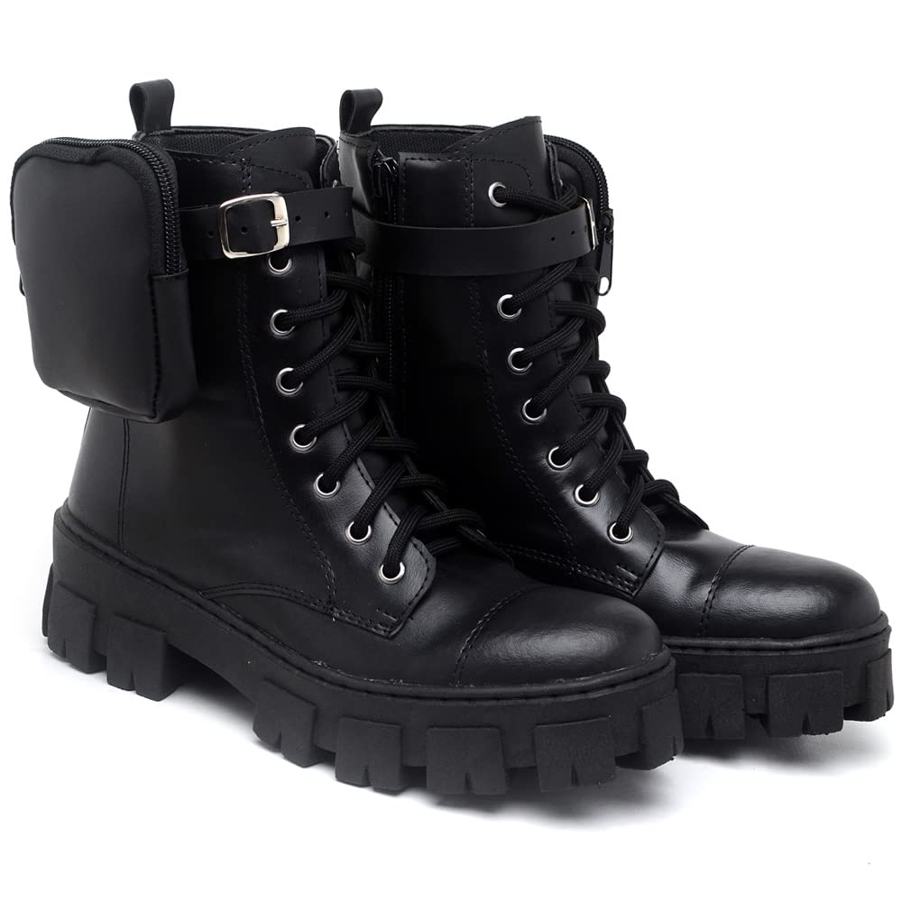 Oferta! Hoje é o melhor dia para comprar Bota Coturno Tratorada Feminina Fecho em Cadarço Sola Robusta com Bolsa com aquele preço que você procura e ainda com as melhores condições!