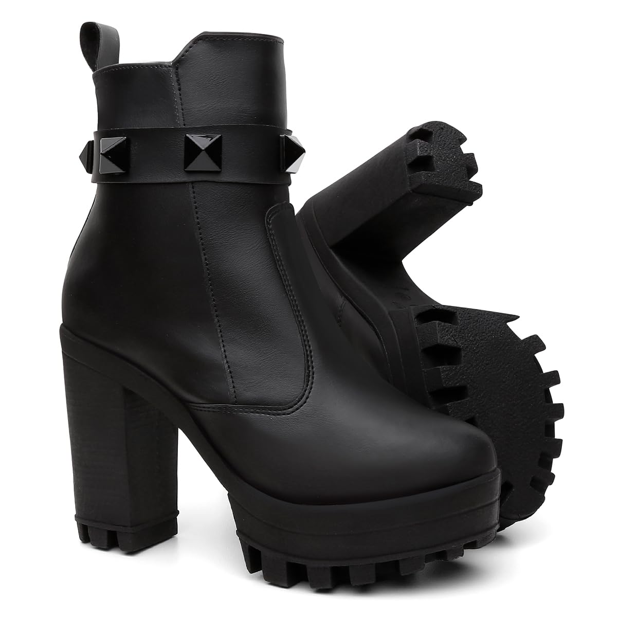 - CONFORTO E ESTABILIDADE – Salto alto grosso e plataforma tratorada que garantem firmeza ao caminhar e conforto durante todo o dia.