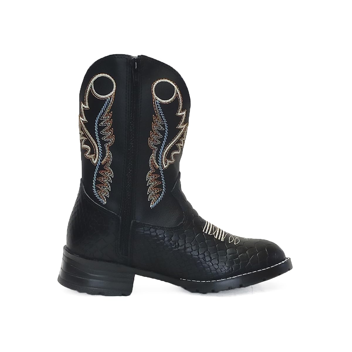 Bota Country Texana Infantil Unissex em Couro Legítimo Preto com Estampa de Cobra e Cano Bordado Kapell