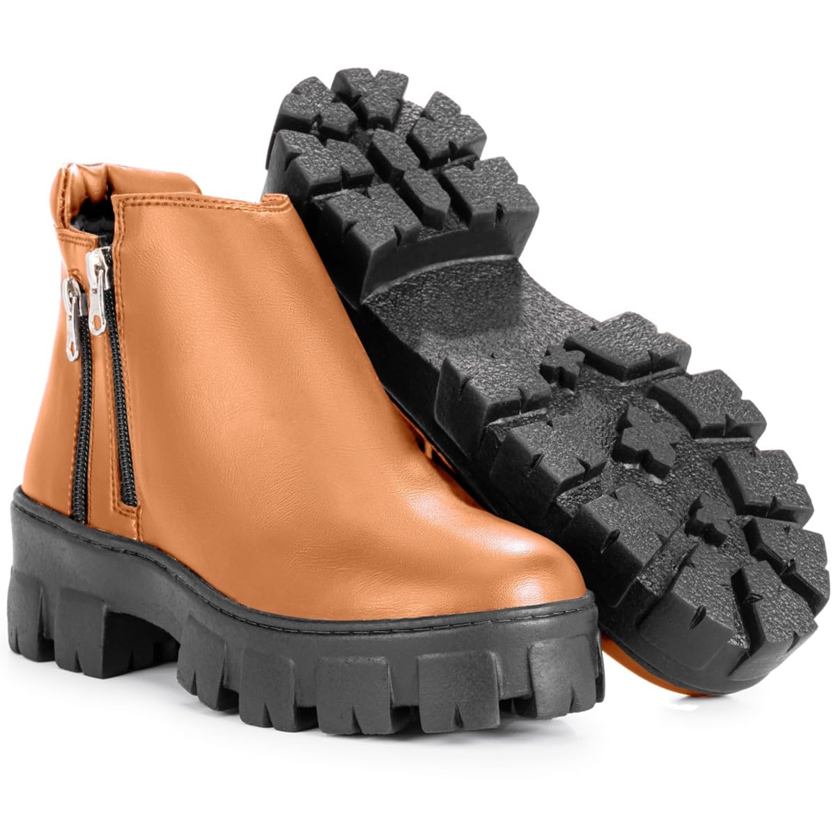 - Estilo: Botas femininas de cano curto com zíper lateral e sola tratorada para conforto e aderência.