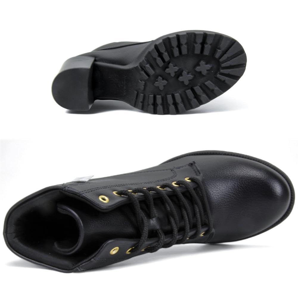 - Bota coturno feminina com salto grosso de 10 cm e design tratorado, oferecendo estilo e altura