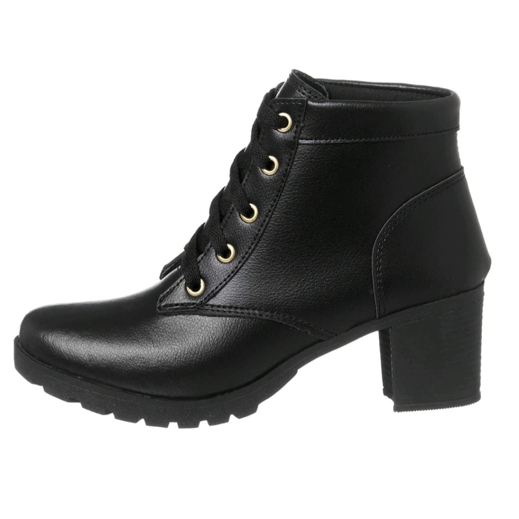 Oferta! Hoje é o melhor dia para comprar Bota Preta Feminina Botinha Coturno Salto Baixo Cano Curto Tratorada com aquele preço que você procura e ainda com as melhores condições!