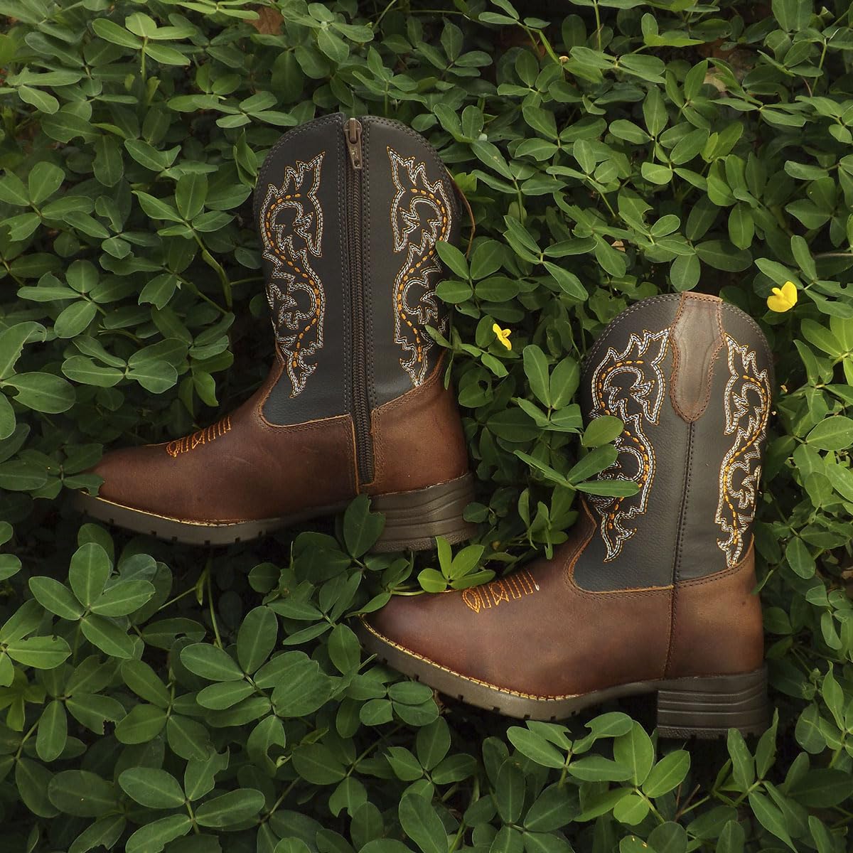4 avaliações para Bota Texana Infantil Unissex em Couro Legítimo Marrom com Cano Bordado Tribal Laranja Country Rodeio Vaquejada Kapell