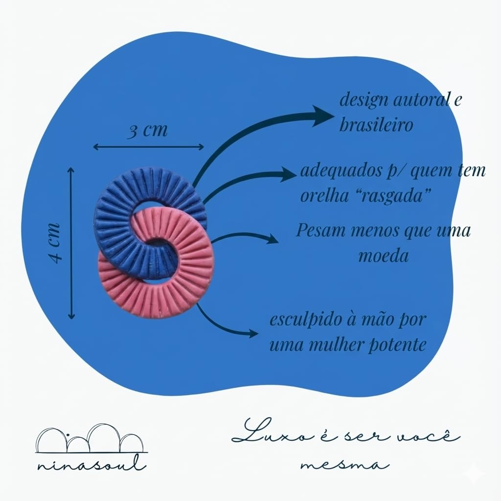 - Design Autoral Brasileiro: Modelo exclusivo Nina Soul com argolas entrelaçadas e textura ranhurada feita à mão.
