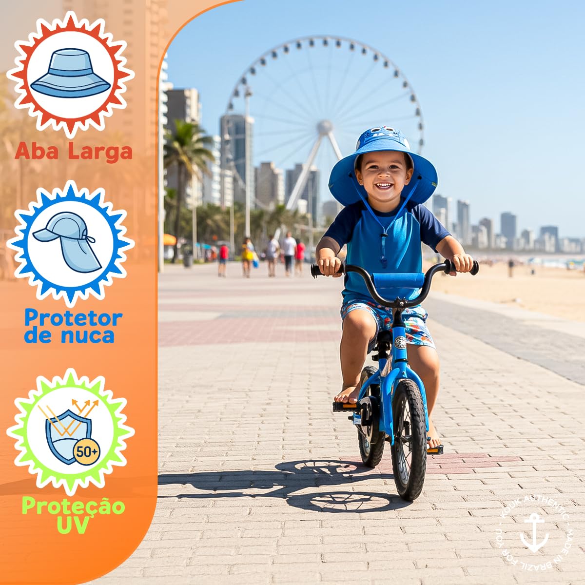 - Proteção Solar UV 50+ – Material premium que ajuda a proteger a pele sensível das crianças contra os raios solares durante atividades ao ar livre