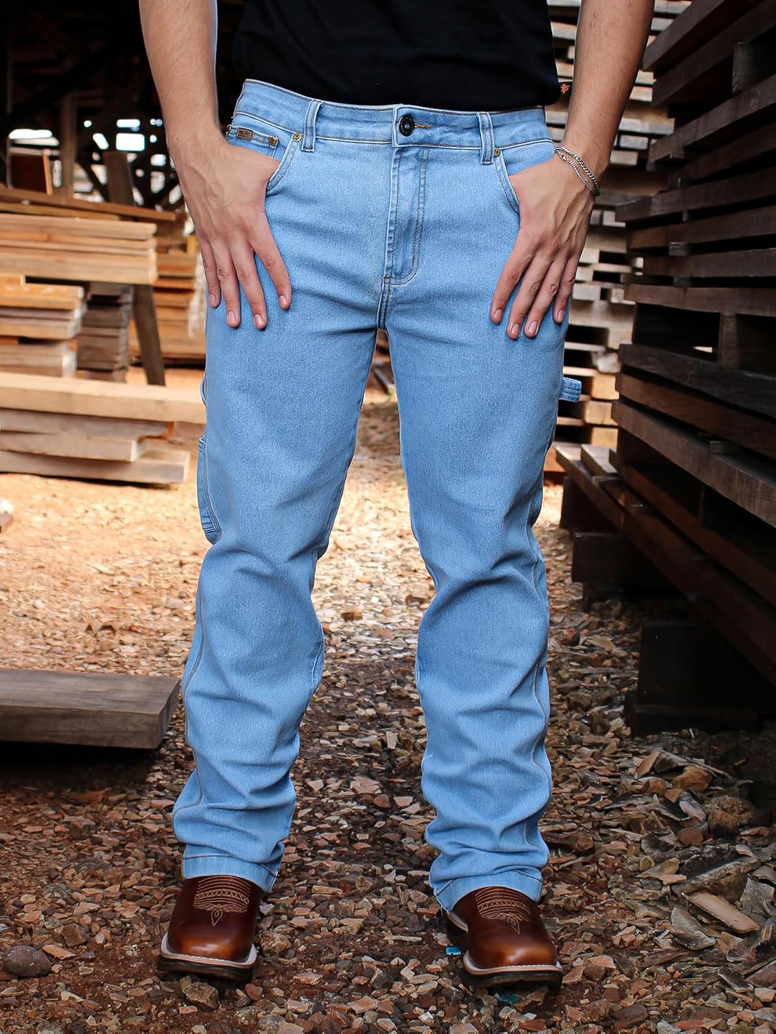 Oferta! Hoje é o melhor dia para comprar Calca Jeans Country Carpinteira Masculina Barra Larga Texana Americana Elastano Pura Raça com aquele preço que você procura e ainda com as melhores condições!