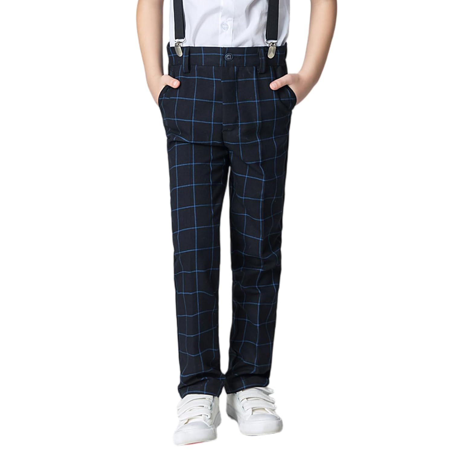 Yanlu Meninos Calças Sociais Azuis-Marinhos Com Frente Lisa Para Crianças, 8 Peças, Uniformes Escolares Da Moda, Calças Com Cintura Ajustável, Calças Para...
