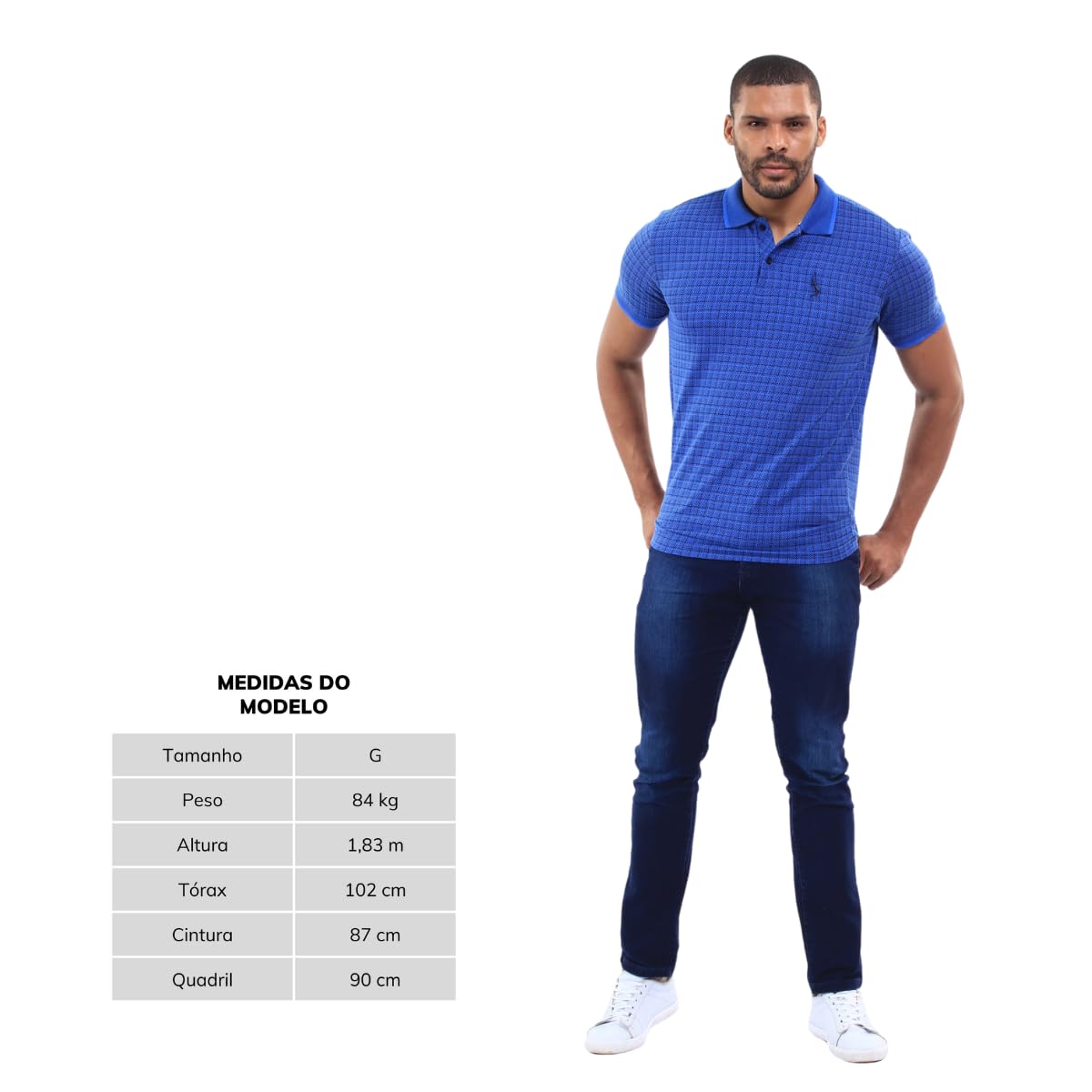 Especificação: Camisa Polo Xadrez Masculina Piquet Jacquad Algodão Manga Curta