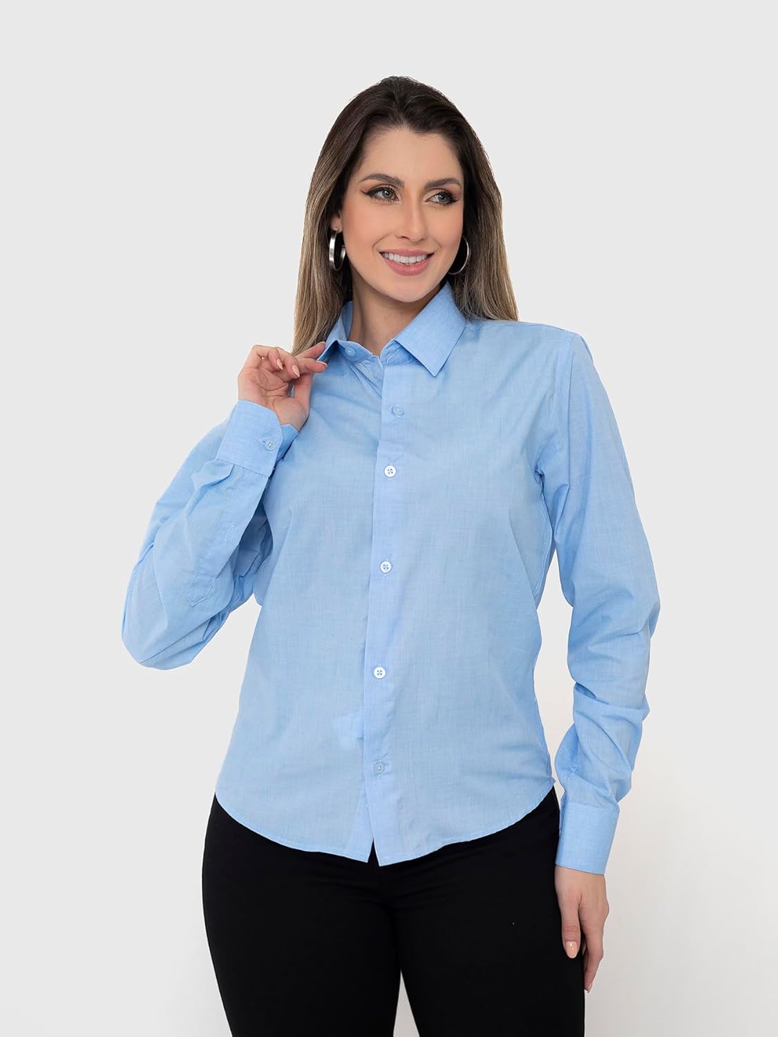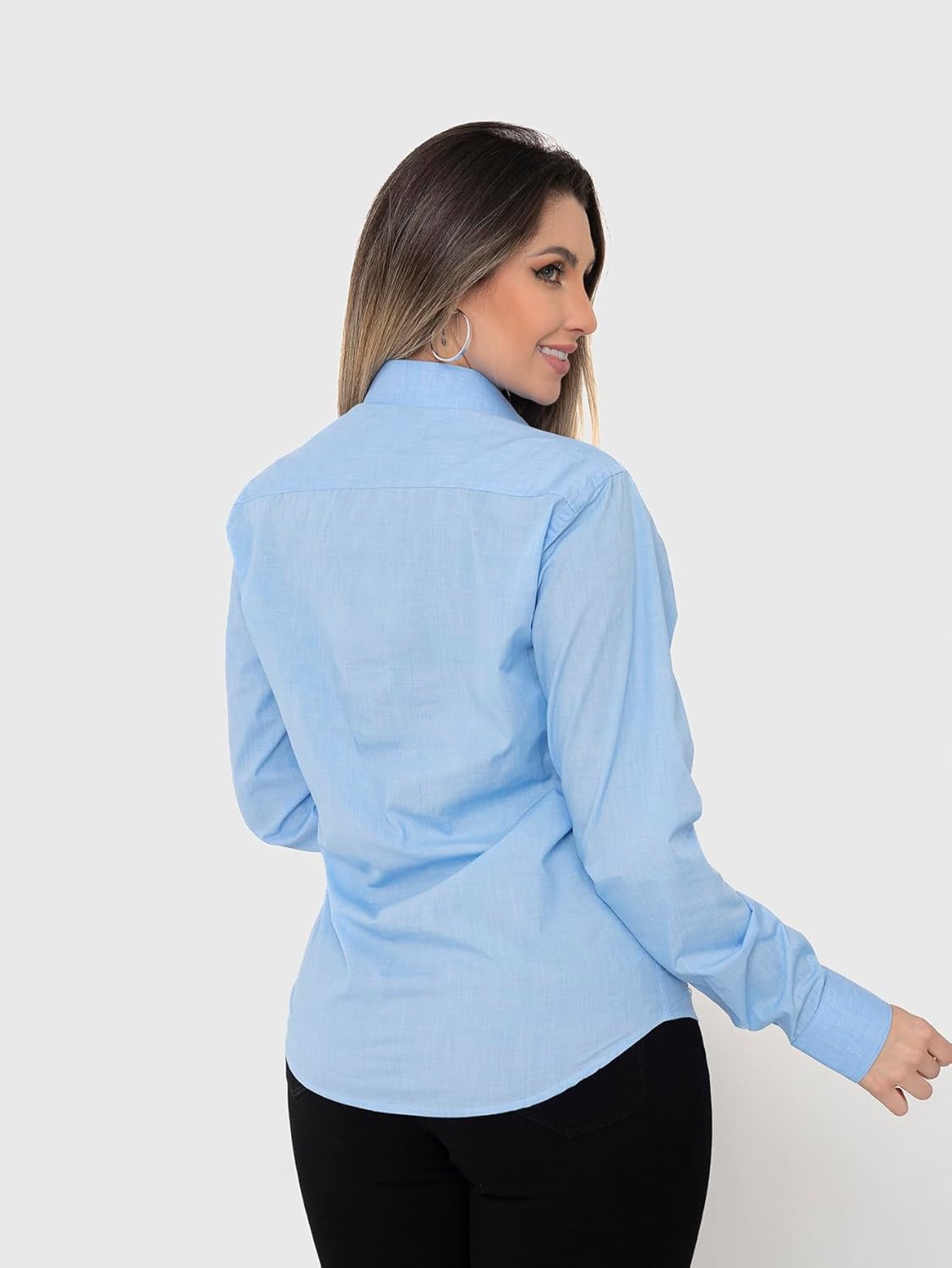 KIT Feminino 2 Peças - Camisa Social Premium Tipo Linho Azul Claro e Camisa Social Slim Azul Bebê