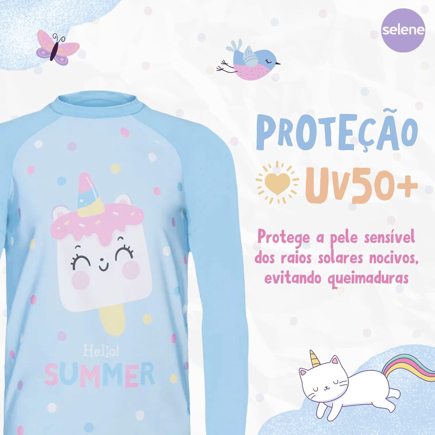 Olá, sou o consultor Juarez. Veja abaixo as melhores oportunidades para Camiseta Manga Longa INFANTIL Proteção UV50+ Selene Menina Desenho