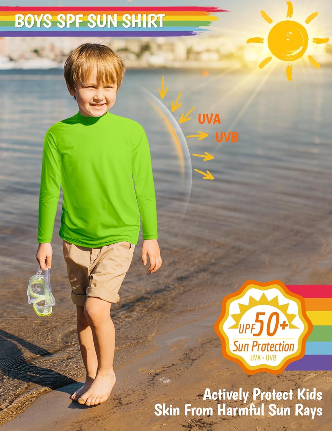 - Rash Guard de manga comprida FPS 50+ para crianças e crianças: a camisa de natação de manga comprida FPS 50+ bloqueia 100% dos raios UVA/UVB certificada, perfeita para crianças e crianças brincando sob o sol de pico das 10h às 16h. Proteção solar FPS infantil com cobertura reforçada nos ombros para aventuras durante todo o dia.