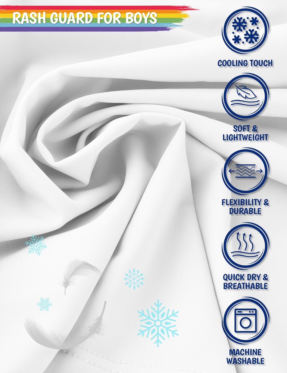 - Camisas de natação leves de secagem rápida para crianças ativas: Tecnologia de secagem 3 vezes mais rápida: protetor de umidade para crianças seca 3 vezes mais rápido do que roupas de banho normais, ideal para transições de piscina para parque. O tecido respirável evita calafrios pós-natação em crianças e crianças.