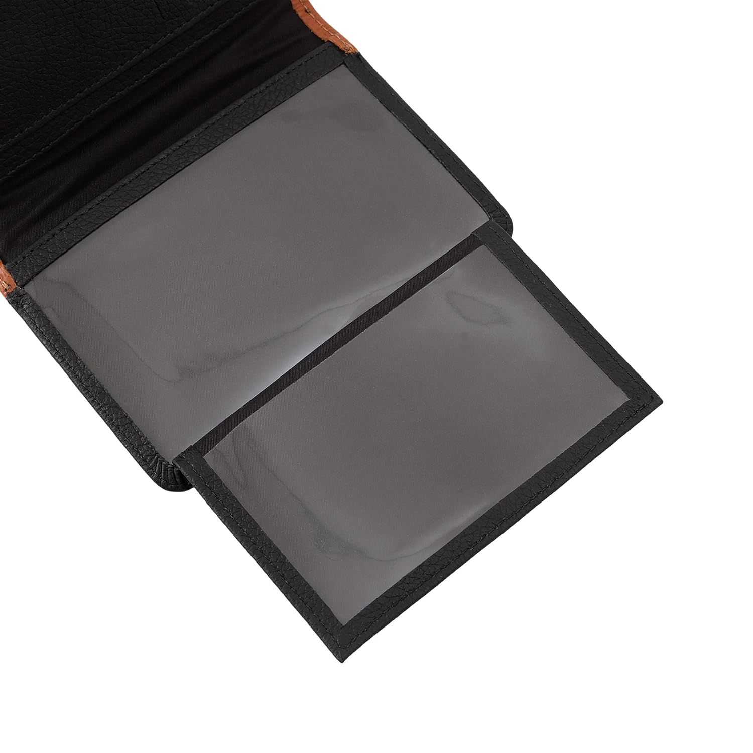 Parte interna: Dois porta notas dobradas. Seis slots para cartões que comportam até 12 unidades (considerando utilizar 2 cartões por slot). Porta CNH e RG/Documento veicular revestida em PVC.