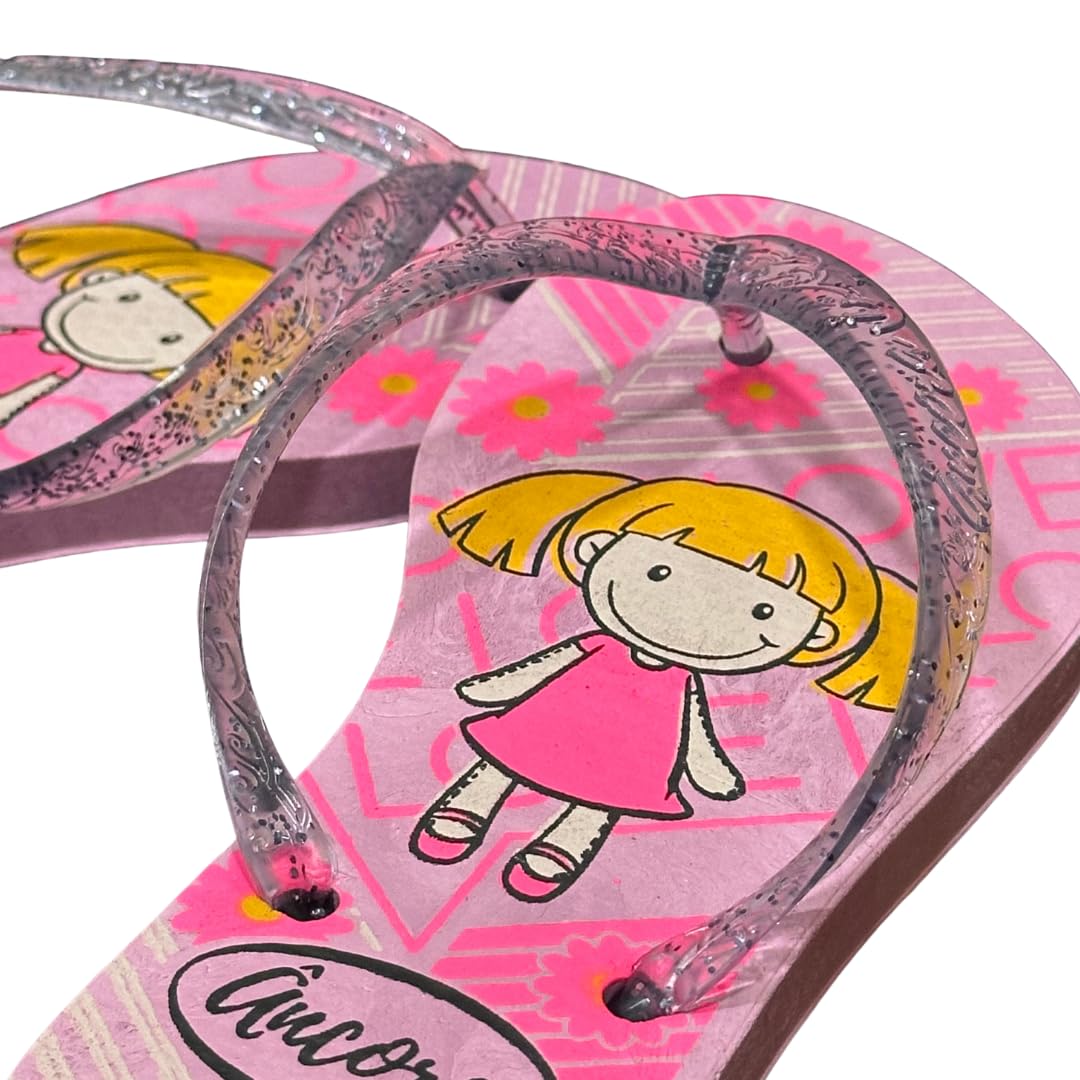 Chinelo Infantil Feminino Bonequinha Rosa | Sandália Menina Confortável Antiderrapante Praia Piscina
