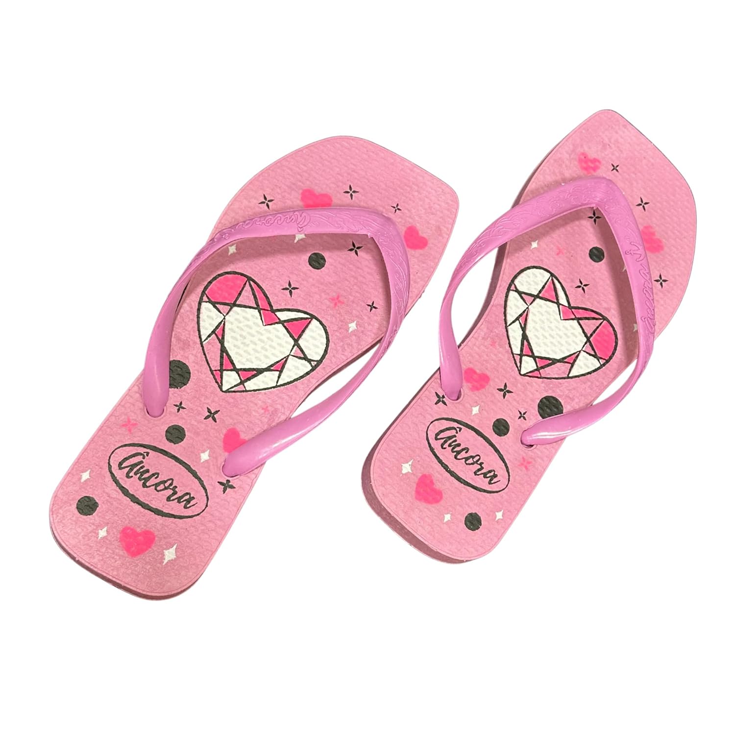 Chinelo Infantil Feminino Rosa com Estampa de Coração Bico Quadrado | Sandália Leve, Confortável e Estiloso para Meninas