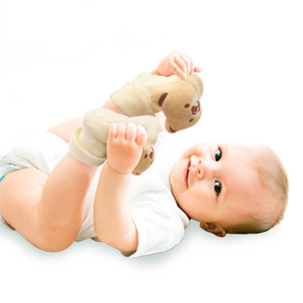Clingo Pantufa Com Chocalho Urso Bege Bege