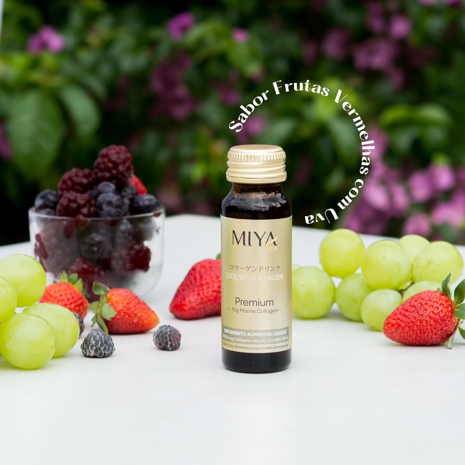 Especificação: Colágeno Líquido Premium Miya Kea | Programa de 30 dias | Enriquecido com Ácido Hialurônico | Sabor Frutas Vermelhas com Uva | Pele Radiante, Recuperação Muscular e melhora na…