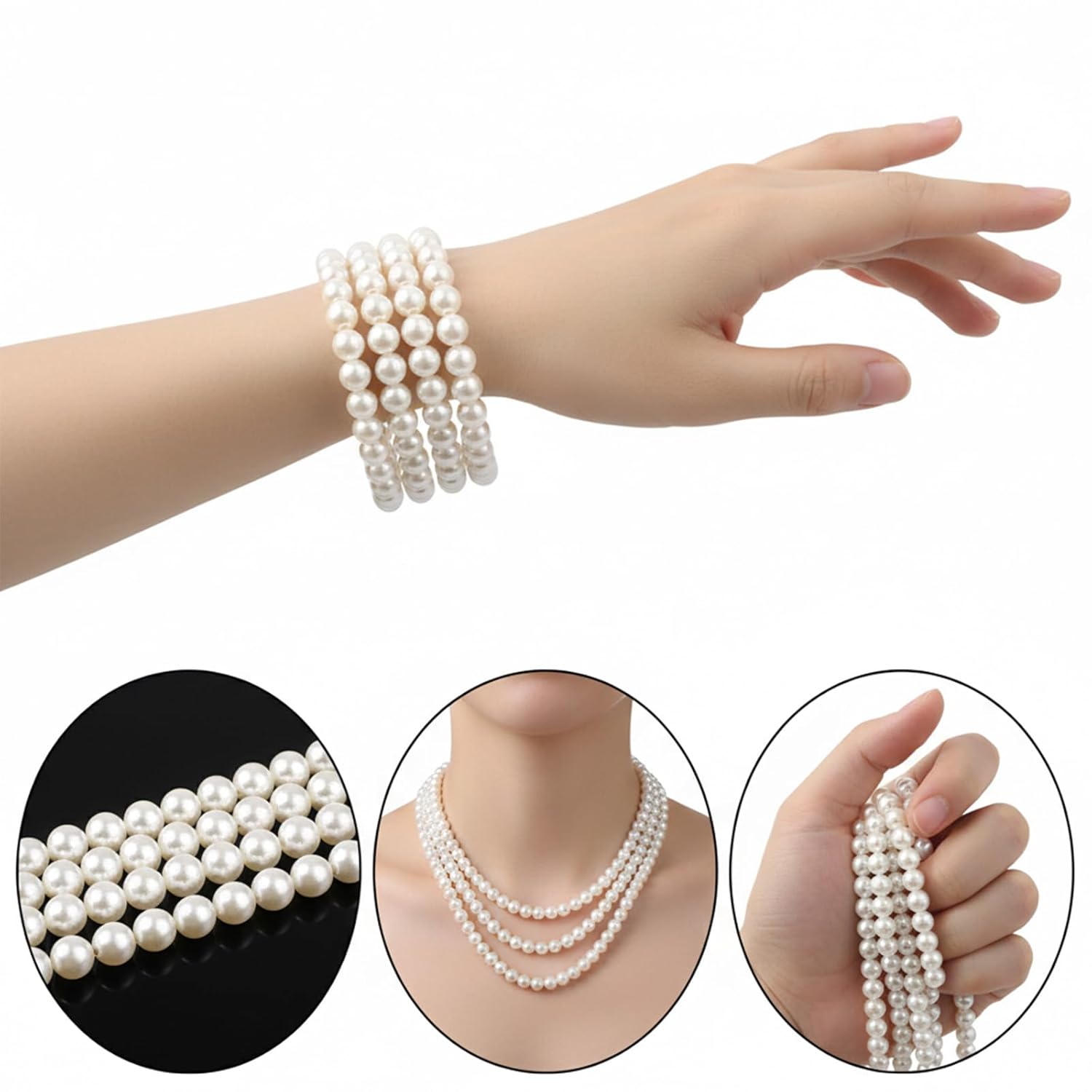 - Design clássico: o colar de pérolas falsas combina perfeitamente com vários estilos de colares, tornando-o ideal para festas temáticas dos anos 1920 ou outros eventos formais, adicionando um toque de charme vintage.