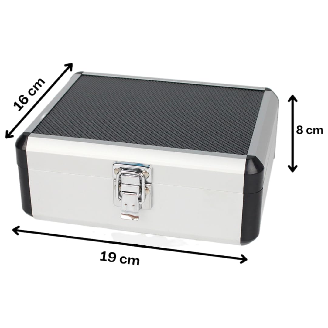 - Maleta de Alumínio Reforçada – Estojo acolchoado interno que garante organização, proteção e facilidade no transporte.