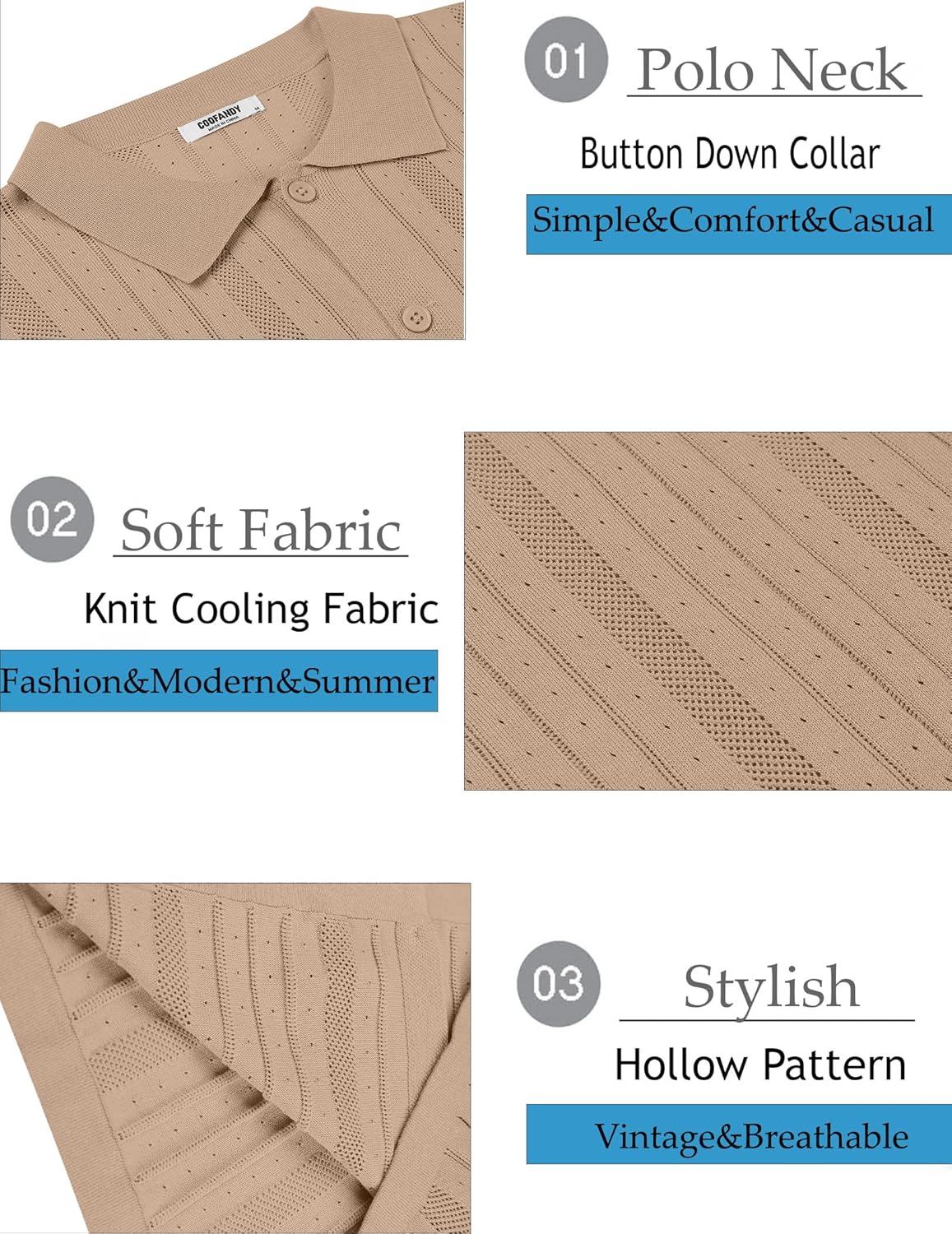 - Moderna e na moda: Fique à frente do jogo da moda com esta camisa polo masculina de malha COOFANDY Cor lisa, estampa listrada, estilo retrô, manga curta, textura de crochê. O design elegante e as cores vibrantes fazem dela um item essencial para qualquer pessoa moderna. Destaque-se da multidão e faça uma declaração com esta camisa masculina de botão de crochê