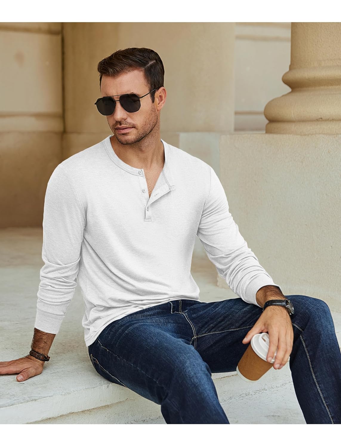 - Blusas versáteis da Henley – A camiseta henley moderna é fácil de usar sozinha ou como uma camada de base, para economizar seu tempo. Em climas mais amenos, combine o pulôver henley com jeans, shorts ou calças de ganga para um visual casual. No clima frio, como camisetas combinam com casaco, ternos, jaqueta, para dar a você um visual formal.
