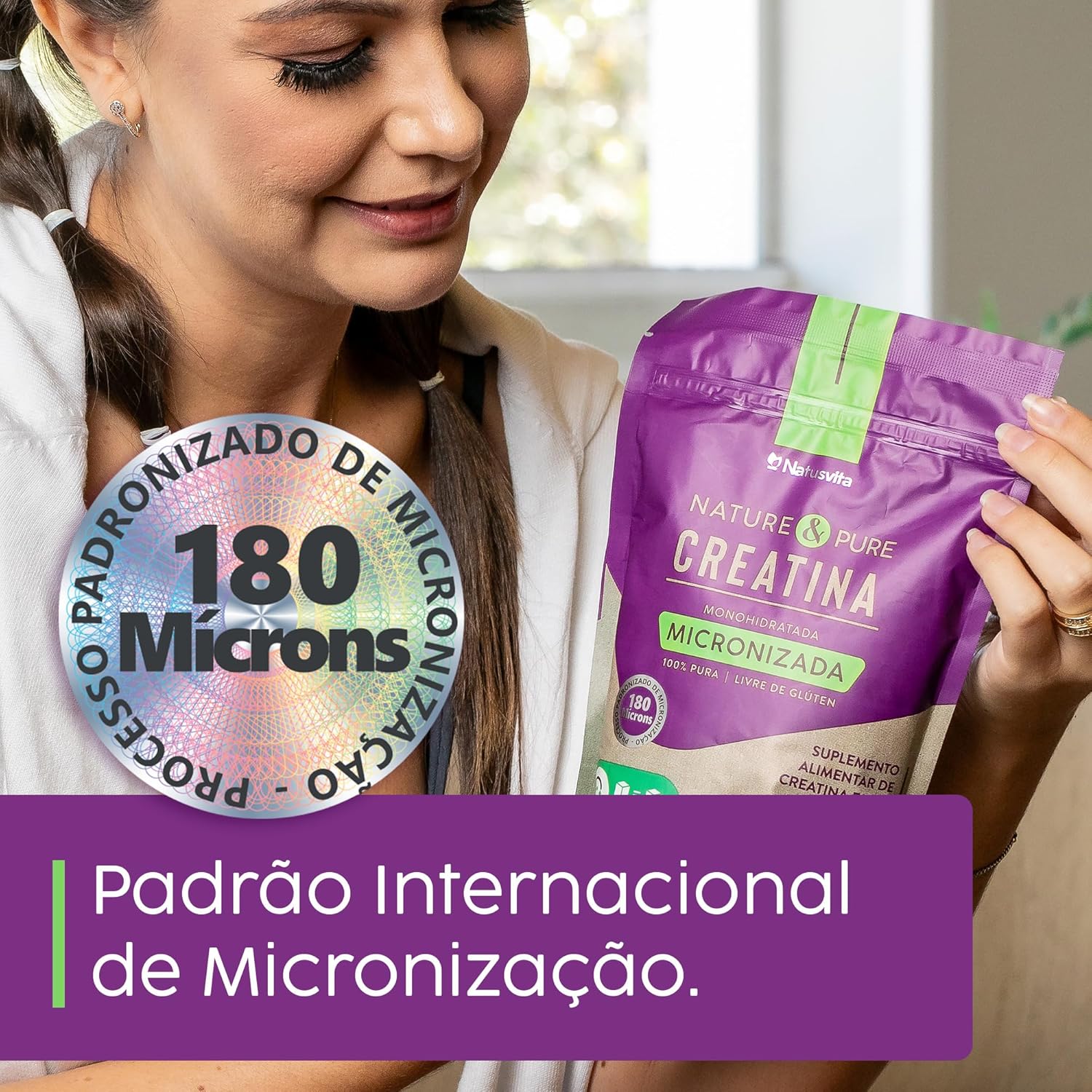 - ✔️ PADRÃO OURO INTERNACIONAL: Se você buscar na PUBMED, a plataforma da Biblioteca Nacional de Medicina (NLM) dos EUA, verá que a Creatina mais estudada globalmente é a Monohidratada e Micronizada de uma marca alemã. A micronização das partículas nestes estudos é de 180 mícrons. Nesse tamanho, a creatina mostrou melhor absorção. A NatusVita usa tecnologia de ponta para obter esse mesmo nível de micronização.