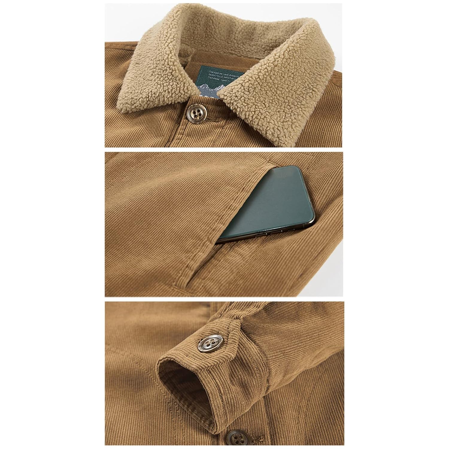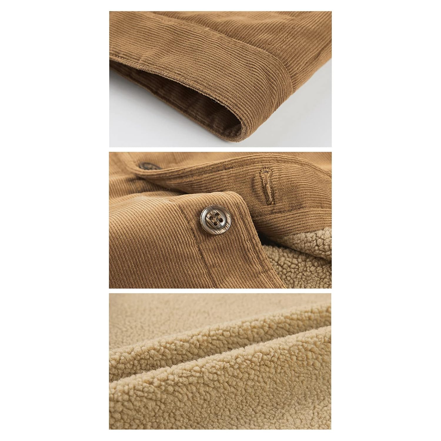 - Material: O material do casaco de inverno forrado com lã é feito de veludo cotelê de algodão, que é confortável, absorve a umidade, não amassa, antiborboto. O tecido macio e quente é adequado para qualquer atividade ao ar livre.
