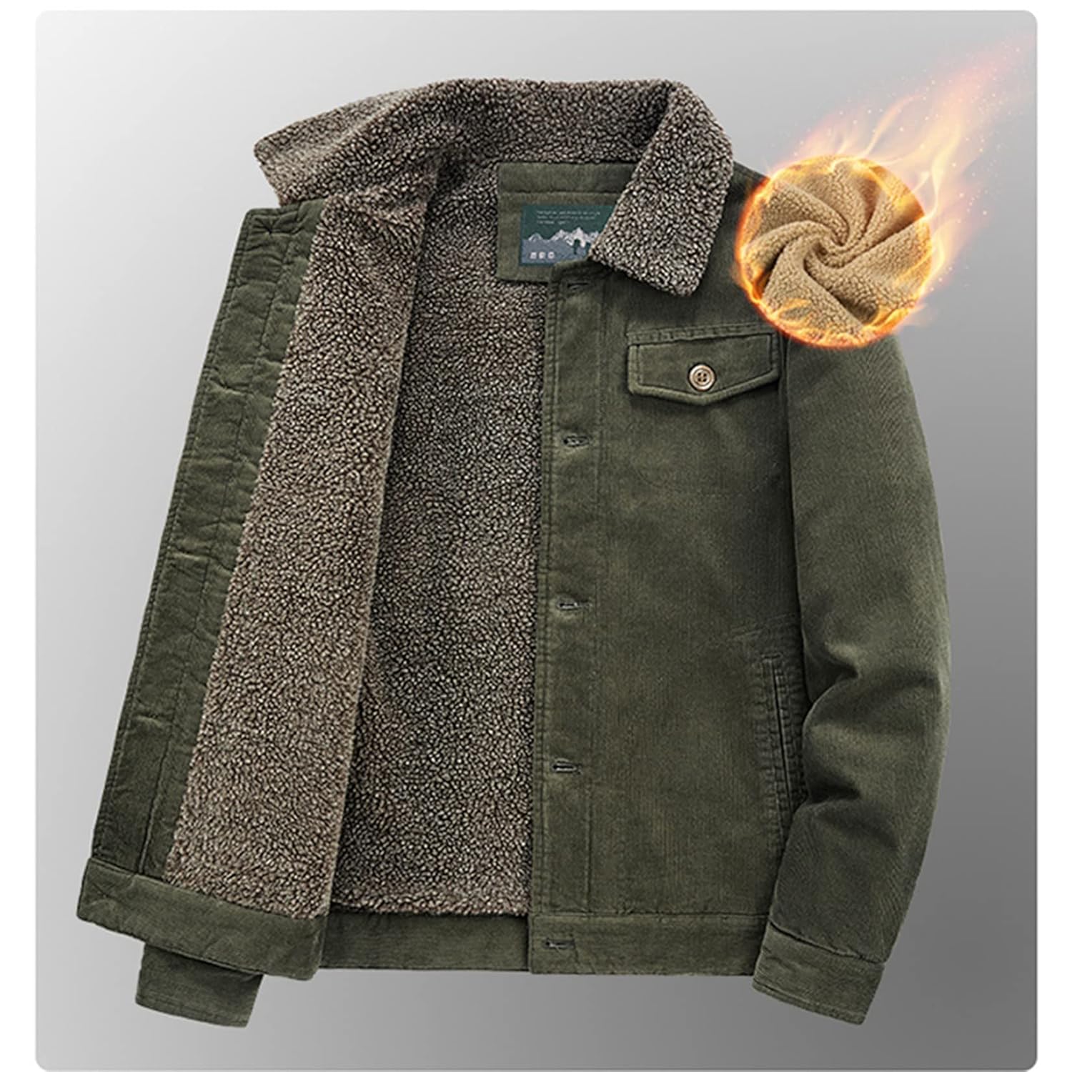 - Material: O material da jaqueta de inverno forrada com lã é feito de veludo cotelê de algodão, que é confortável, absorvente de umidade, antienrugamento, antibolinhas. O tecido macio e quente é adequado para qualquer atividade ao ar livre.