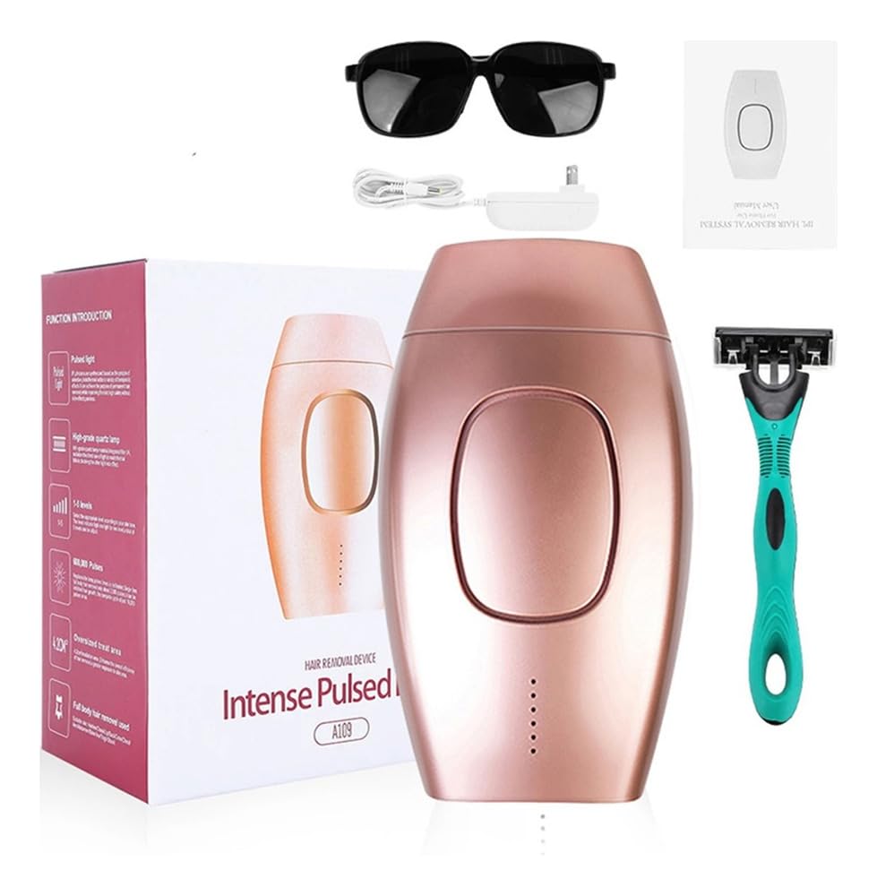 1 Depilador IPL 900 mil disparos, 1 Lâmina de barbea, 1 Óculos, Fonte de energia bivolt