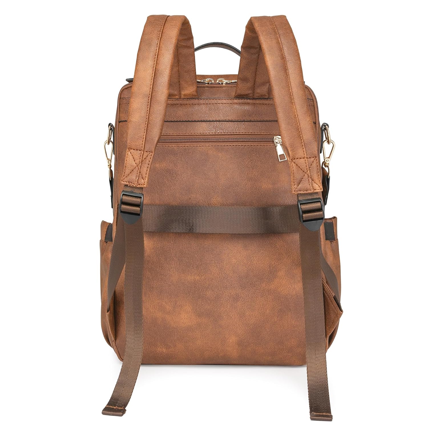 Dora & Liz Mochila feminina para laptop de couro com compartimento para laptop de 15,6 polegadas, bolsa de trabalho universitária para computador