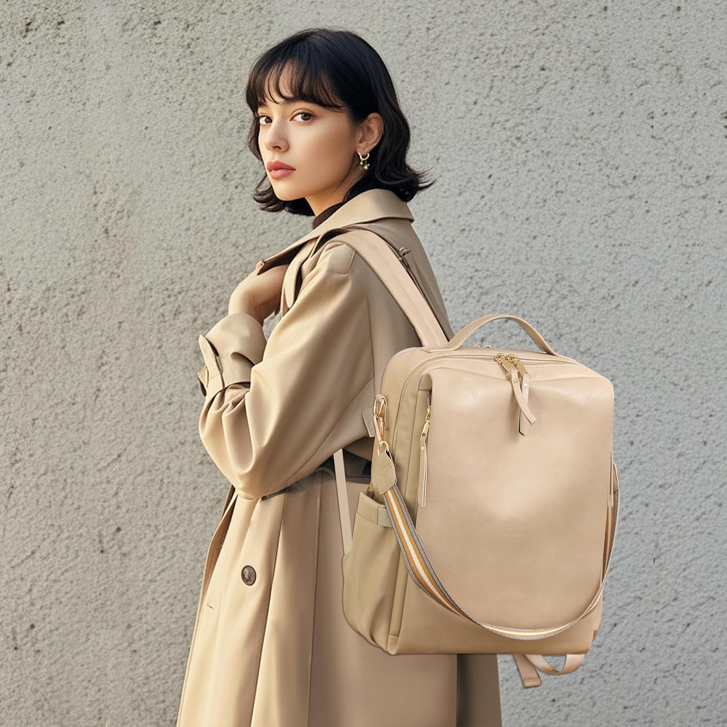 Dora & Liz Mochila feminina para laptop de couro com compartimento para laptop de 15,6 polegadas, bolsa de trabalho universitária para computador