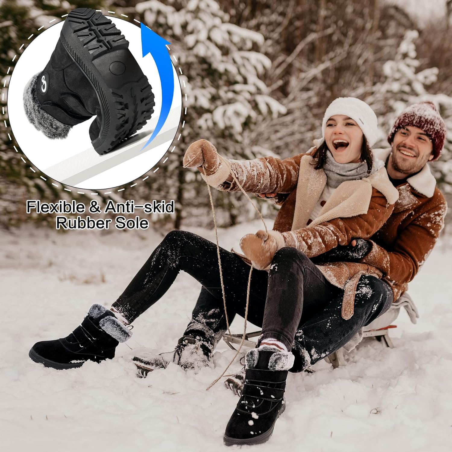 - Forro térmico: as botas de neve femininas apresentam forro macio e confortável de pelúcia e gola de pelúcia, que se ajustam confortavelmente ao redor do tornozelo e envolvem completamente seus pés, protegendo seus pés e tornozelos do frio