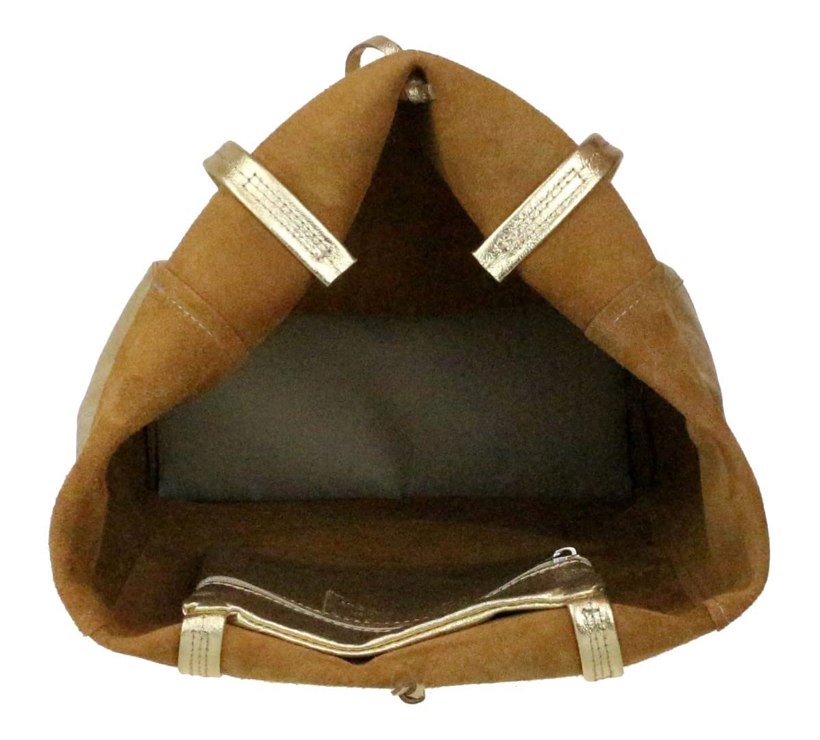 - Um compartimento principal com acabamento em couro natural e design aberto na parte superior.