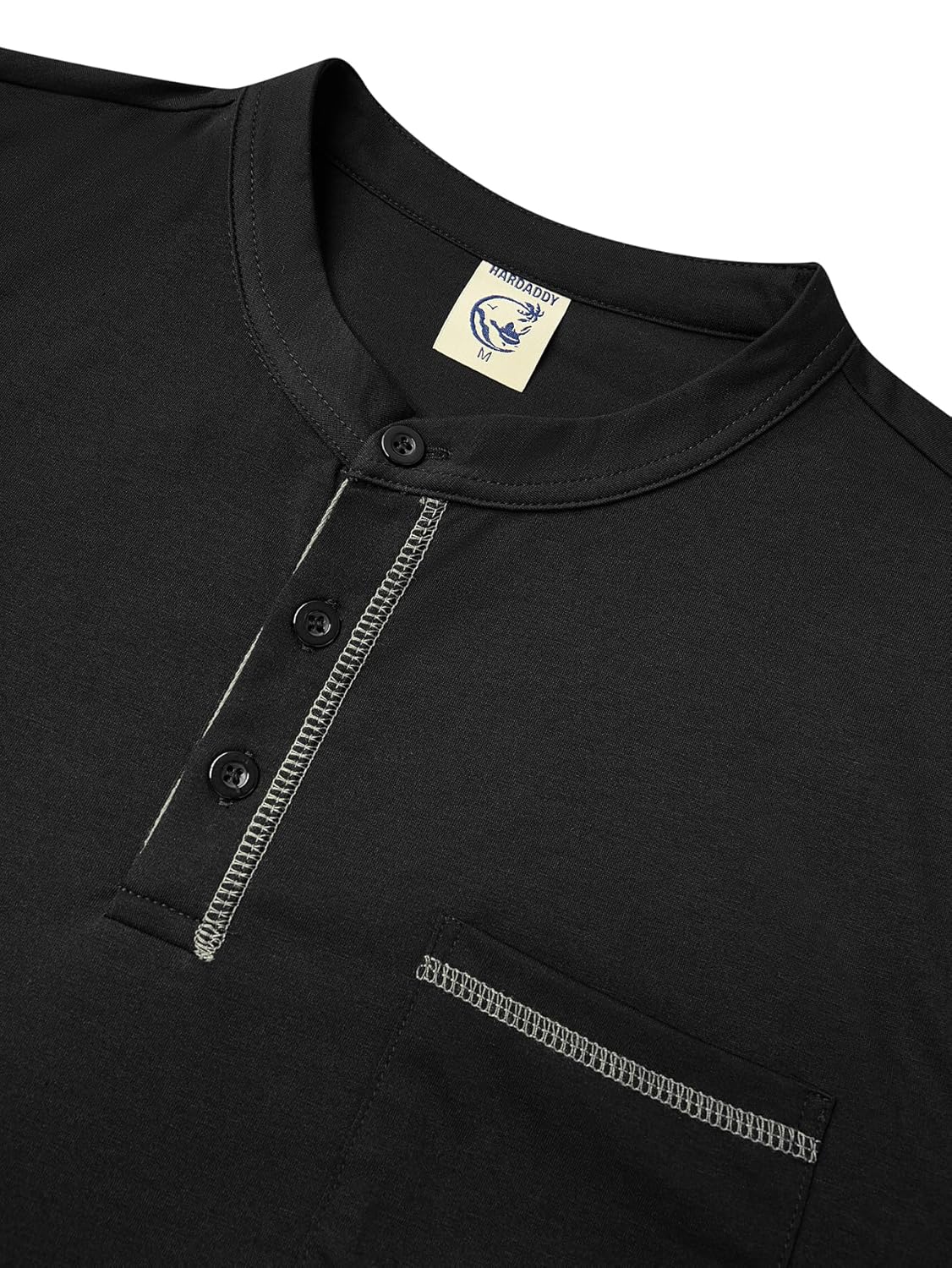 Hardaddy Camiseta masculina Henley de manga comprida casual leve com botões Henley lisa