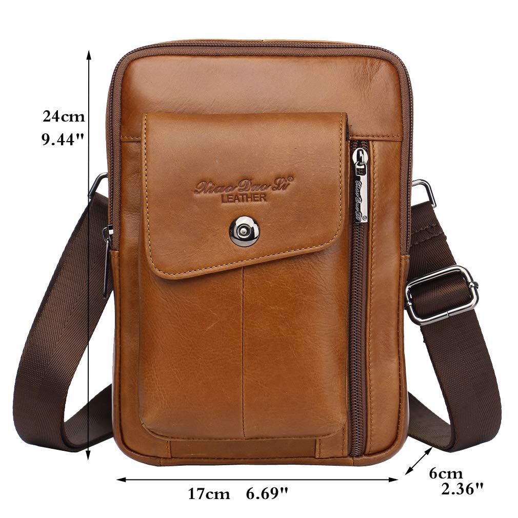 - Bolsa carteiro de couro legítimo e durável: esta bolsa de mensageiro de tamanho médio é feita de couro genuíno de vaca, zíperes de alta qualidade, forro de tecido, fecho de zíper, couro e excelente acabamento, design de tipo contemporâneo, vintage, moda e luxo, que mostra o seu excelente temperamento quando viajar de negócios ao ar livre.