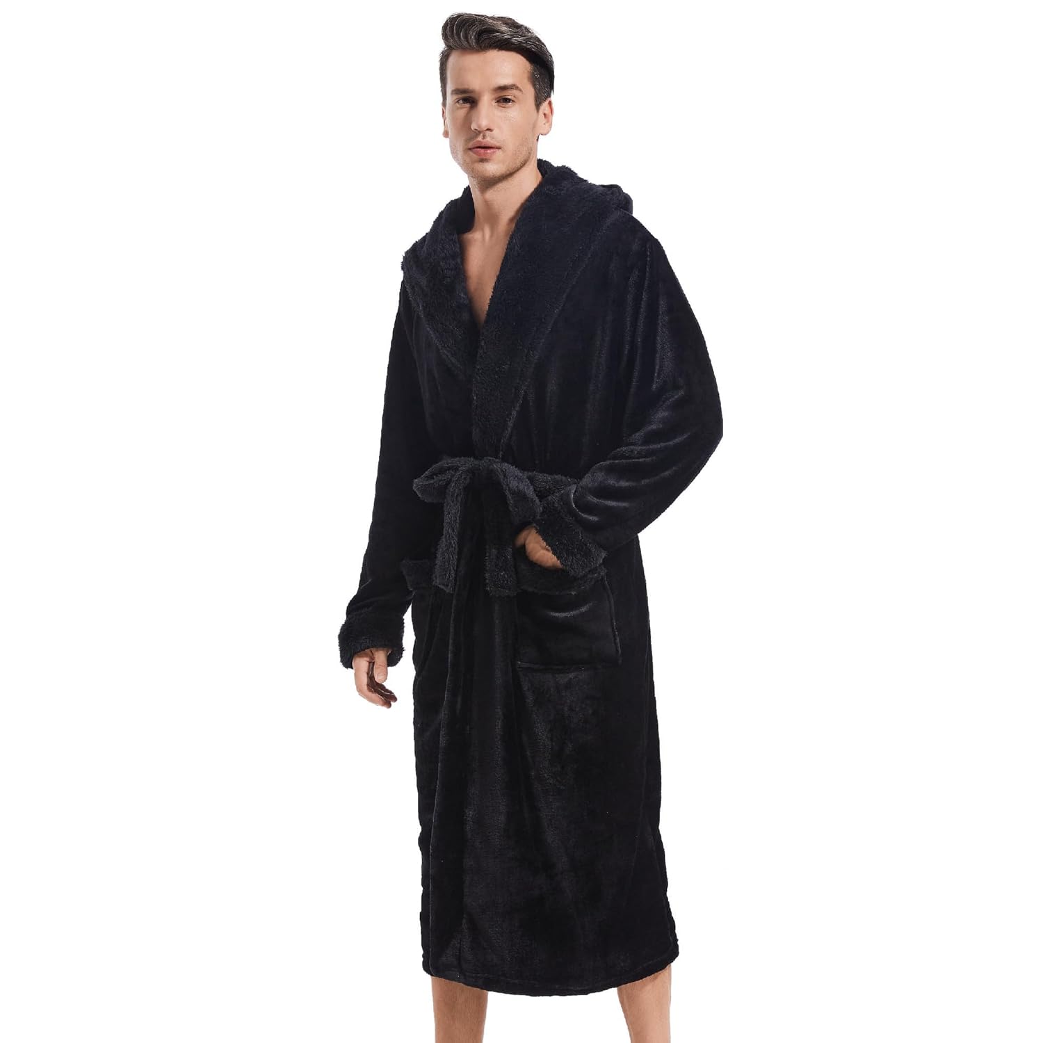 6 avaliações para Inner Wish Roupão masculino com capuz, roupão longo de pelúcia, aconchegante e quente, roupão de spa masculino felpudo com bolsos