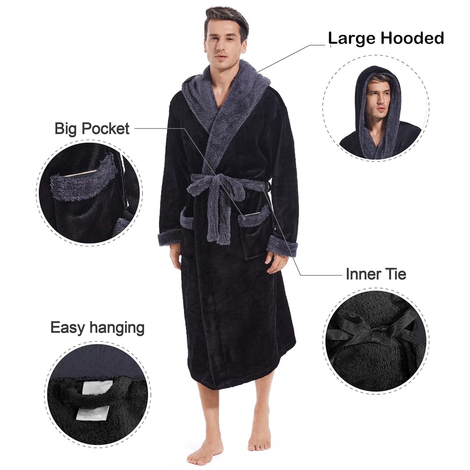 - ⭐Design distinto e elegante: eleve seu estilo com nosso roupão masculino com capuz, apresentando um design impressionante de cores bloqueadas. O capuz de camada dupla é uma fusão de conforto e estética, com a seção de cores bloqueadas feita de material de veludo ártico, complementando a composição de flanela aconchegante do robe. Entre no mundo do conforto, exalando confiança e estilo moderno.