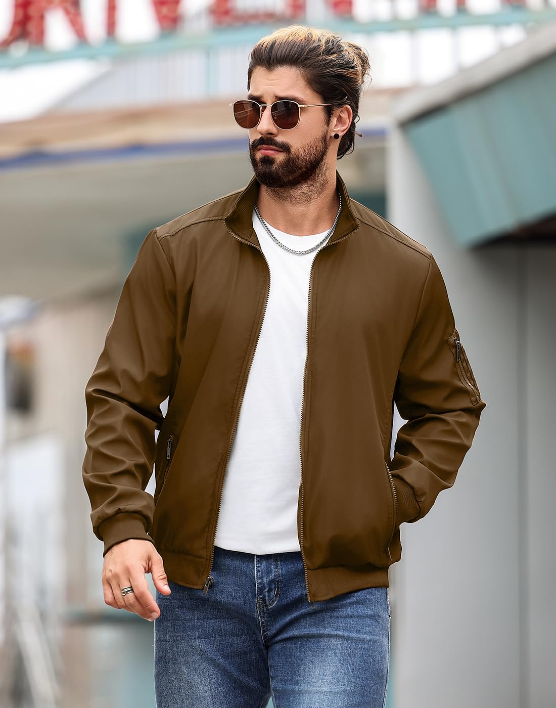 5 avaliações para Jaqueta bomber masculina, leve, casual, corta-vento, casaco com zíper