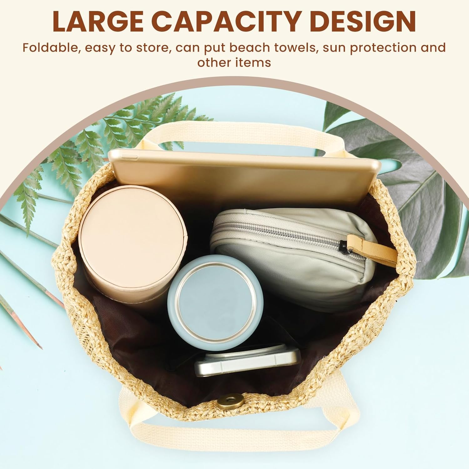 - Design de grande capacidade: estas sacolas de palha de praia medem aproximadamente 33 x 21 x 21 cm, tamanho médio, dobrável, fácil de guardar, você pode carregar toalhas de praia, protetor solar, garrafas de água e outros itens com estilo e conveniência, capacidade realmente grande, prática e moderna ao mesmo tempo